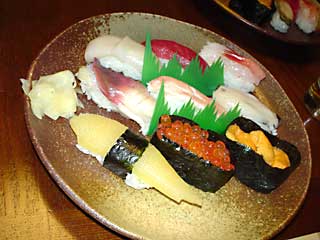 マグロ、ホタテ、数の子、ウニ、イクラ、ボタン海老、ホッキ、イカ、アワビの9貫。安くて旨い!追加で噂の「穴子の太巻き」も注文・・・これも又、旨い!!!