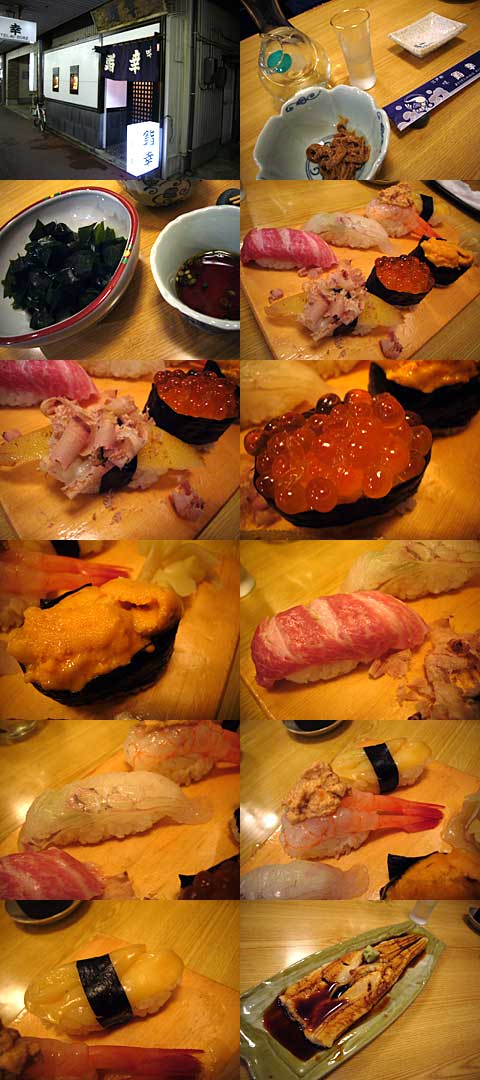 最高の肴で旨い酒を頂いていると「握り」の登場だ。松前沖の「本マグロトロ」、釧路産「イクラ」と「ウニ」、あっさり上品な「平目」、しこしこの食感の「バイ貝」、数十匹のエビの頭みそを乗せた「あまえび」。上質のカツオ節たっぷりの「数の子」。完璧に吟味された素材と仕事。地元、県内外から態々、食べに来る訳が解る。